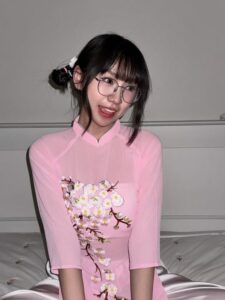 เราบอกเลยว่า สาวแว่น คนนี้เวอร์ชั่นด้านมือไม่ธรรมดา ของดีเลย ลองไปดูกันได้ ถ้าน้องมาทำ คอนเทนต์ แนวสาวสายมืด เราก็ว่าดีอยู่นะ อีกชุดที่น้องเอามาใส่เป็นงานคอสเพลย์สาวหมวย ในชุดแบบเดรสสายหมวยจีนสีชมพูหวานมาก มีลายดอกไม้ แต่ว่าชุดนี้แอบแซ่บตรงเนื้อผ้าที่มันบางมาก จนเห็นข้างในทะลุเลย